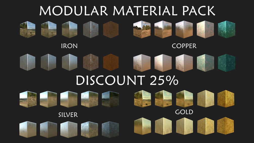 If your software doesn’t support this format you can use it with the Substance Player by first setting the material as you like and after exporting it as individual images (BaseColor, Normal, Roughness, Metallic, Height).